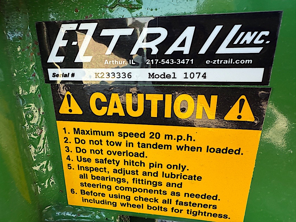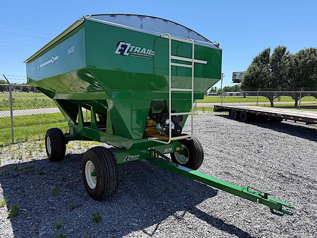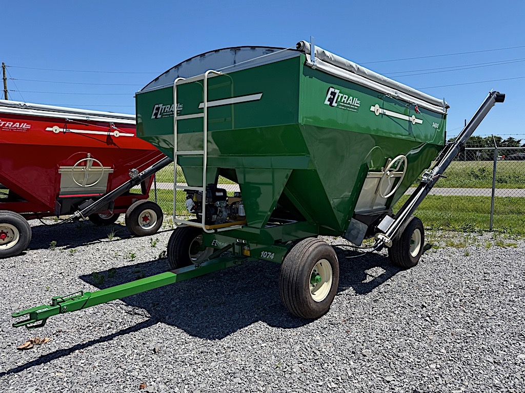 Unused Ez-Trail Seed Tender. 300 bushel, 14’ Poly Auger Telescopic Tube Self contained power unit. Green in color.